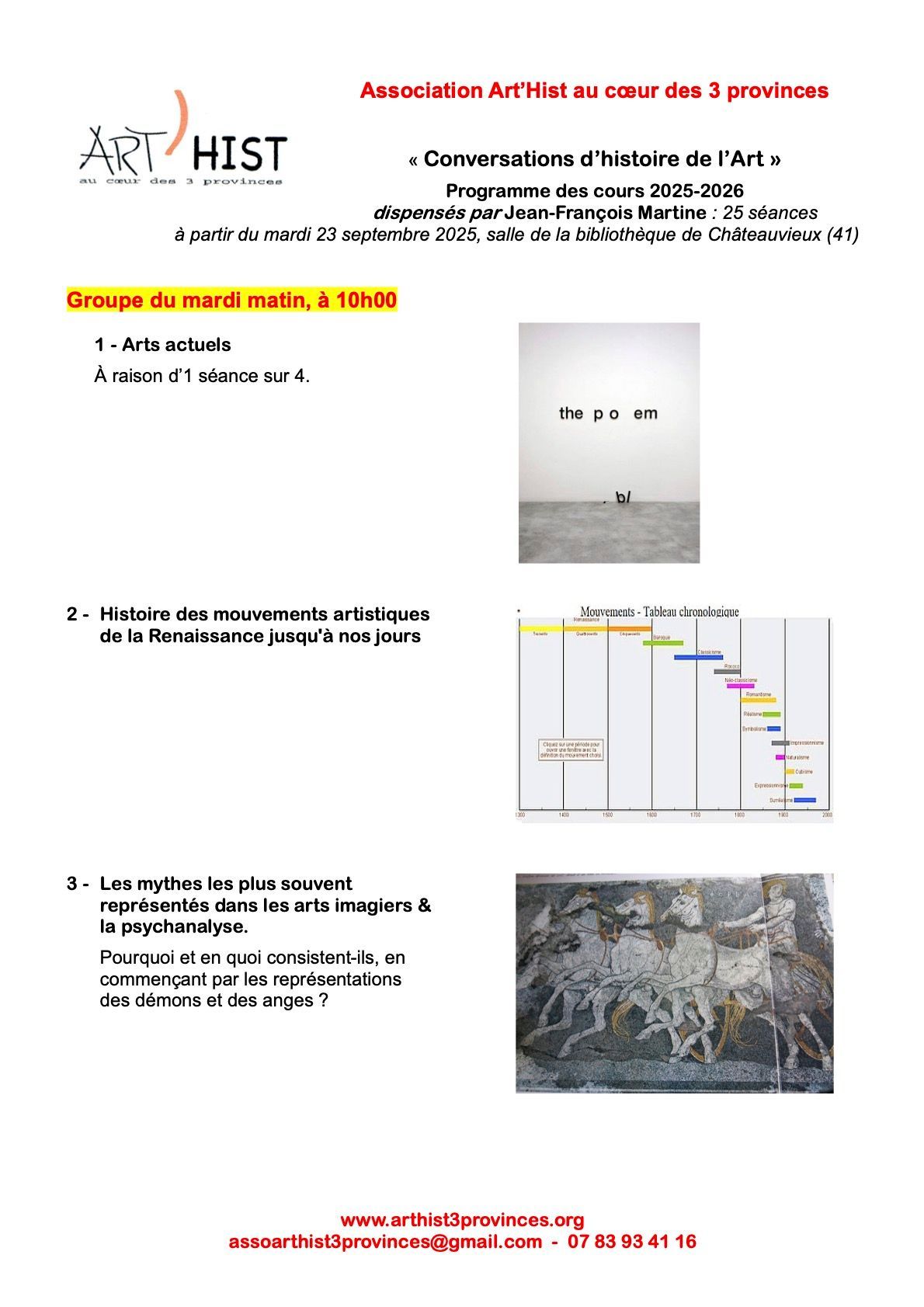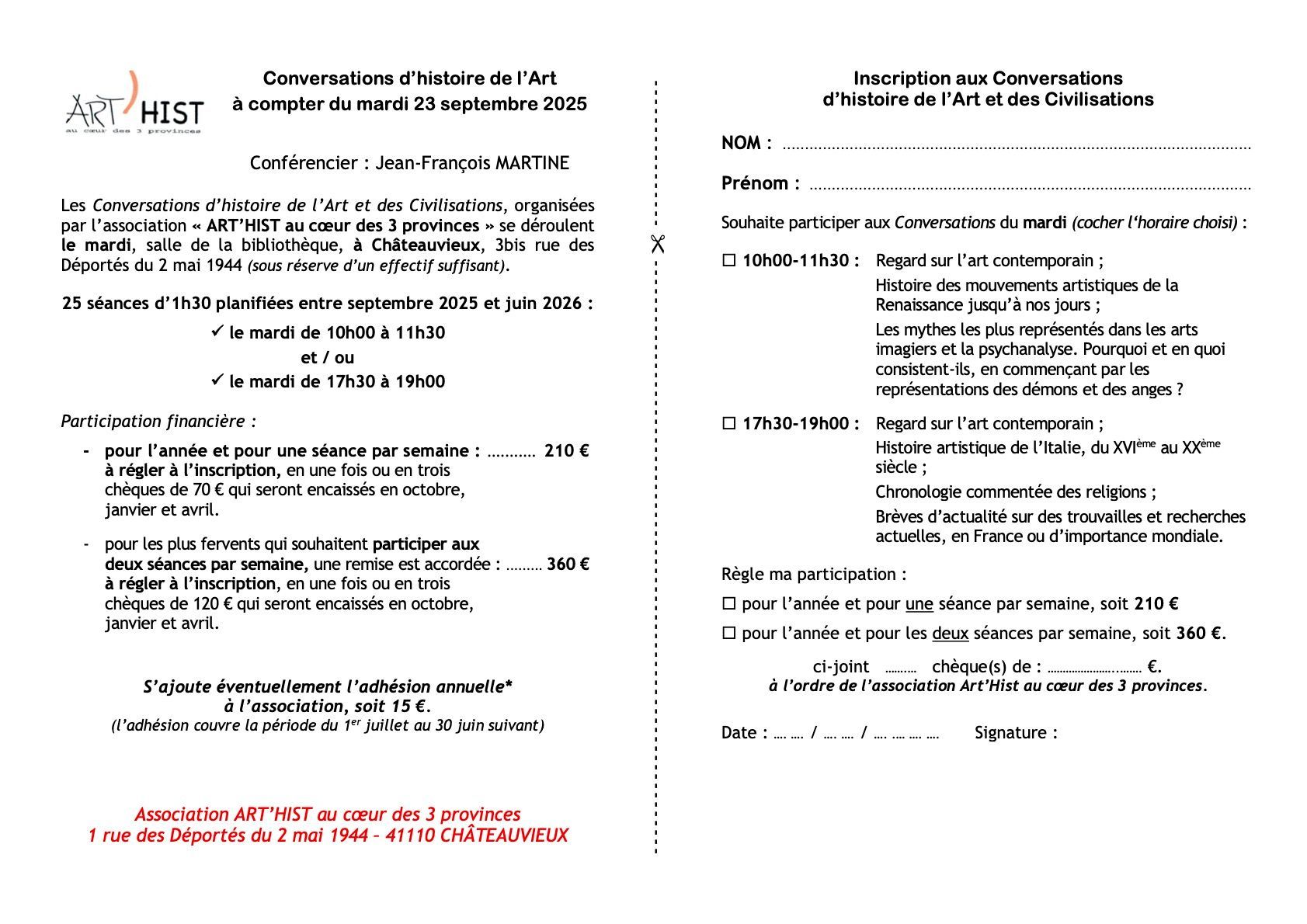 Programme de chaque cours ci-dessous - Bulletin d'inscription à la suite.